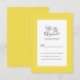 Detaljkortet för RSVP till gul bröllopsfest har en vacker, chic ram i trendigt lysande gult med en elegant, vit tunn ram. Kalligrafi och typsnitt är kolgrå på vit bakgrund. En modern mall för datum och år kompletterar den unika designen med kalligrafi. Baksidan av kortet är enfärgat gult.
