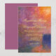 Ge tidlös konst och sofistikation till din bröllopsfest med denna romantiska och stämningsfulla juveltonade design med en digitalt förbättrad version av Claude Monets målning, The Houses of Parliament, Sunset (1904). Det ursprungliga mästerverket har konstnärligt förfinats och fått förbättrade färger för att framhäva solnedgångsfärger i guldorange, djup violett och rosa nyanser, vilket skapar en lyxig, elegant och dramatisk atmosfär för din fest.