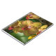 Ett slut fotograferar upp av härliga gula orchids som skrivs ut på täcka av en anteckningsbok