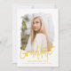 Trendig tillkännagivande för studenten med student-fotot inuti en texturerad mask ram med "Student" i ett handskript med gult. Anpassa fotot tillkännagivande för studenten genom att lägga till student namn, namn och studenten. Tillkännagivandet återgår till visning av en gult och vit stripe-design.