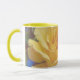 Söten, blommigt mugg, har mitt originalfoto av ett stort gul ros i en trädgård, som bearbetas med en vattenfärgsteknik för ett illustrerat, målat stil med ett pekfinger av stollig. Den har en gult färg inuti och på handtaget, som kan ändras om så önskas. Det här är 11 uns mugg, bara den perfekt som är storlek för ditt bryggkaffe eller te - eller till och med hett choklad! Det skulle vara en underbar gåva och man kan lägga in paket med kaffe, tepåsar eller hett choklad. En annan presentidé är att lägga en liten växt i den för att göra extra speciellt för din älskade.