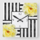 Gul ros Black and White Rand Fyrkantig Klocka