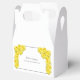 Den här designen har rustik gul ros. Gul ros kompletteras av en elegant svart klädd gräns. Gulten av blommorna i ro skapar en rustik blommigt land-trädgård. Utformning av en förmånslåda i elegant bröllop med modernt inslag. Det finns också möjlighet att matcha bröllopsinbjudningar och andra artiklar i kontorsartiklar.