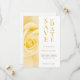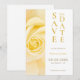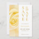 Ett modernt spara-till-datum-kort för bröllop med en gul ros-panel.