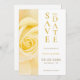 Ett modernt spara-till-datum-kort för bröllop med en gul ros-panel.