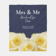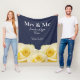 Gul ros Mrs. Och Mr Möhippa Couple Bröllop Gift Fleece Blanket. Blommigt personlig bröllop filt med ett vitt trendig på en marin blå bakgrund med underbart gul ros. Anpassa texten och skapa en unik, udda bröllop-gåva med briden och trimperiets namn, bröllop-datum och bröllop.