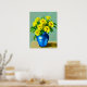 En Boho-bild av gul ros i ett blått keramiskt vas