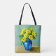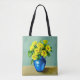 Tote bag in a Boho art illustration of gul ros in a blue ceramic vas
