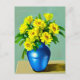 Vykort i en Boho-bild av gul ros i ett blått keramiskt vas