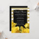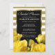 Vackert gul ros och guld rand inbjudningskort för möhippan. Elegant till inbjudan era gäster till en vår eller sommarmöhippa. En svart rektangel innehåller möhippan, som omges av ett glansigt guld ram. All text kan redigeras. Du kan också ändra teckensnittet storlekt och färg.