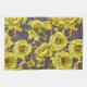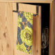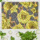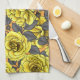 Gul ros med grått löv på orange kökshandduk