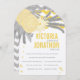 Cute Whimsical Coral Hearts with Modern Typsnitt Gult and Grått Modern Modern Geometric Zig Zag Mönster bröllopsinbjudan - Den här svenskt belysta Mönster har Acorns Ranunculus och Löv som är perfekt för en Grått utomhus eller elegant avslappnad