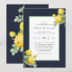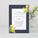 Utformningen har en utskriven färgad med blommigt inslag i nyans, marinblått och citronfärgad gult över bladblommor och ro blommor på en marin och gult vattenfärgad bakgrund. Underbar för bröllop firande!