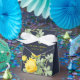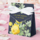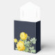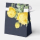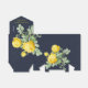 Utformningen har en utskriven färgad med blommigt inslag i nyans, marinblått och citronfärgad gult över bladblommor och ro blommor på en marin och gult vattenfärgad bakgrund. Underbar för bröllop firande!