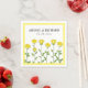 Gul ros blommor romantisk blommigt vår bröllop Napkins. De här pappra servetterna från bröllop har en romantisk blommigt som visar en charmerande rad av gul ros med känsliga löv av grönt. En kompletterande gult gräns elegant ramar den arrangemanga, som stärker den övergripande sammanhängande och sofistikerade estetiska perfekten för ett firande i bröllop.