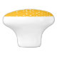 Mönster av vita prickar på en gul senap bakgrund. Prickarna är jämnt fördelade och skapar en enkel, vintage, lekfull estetik.
