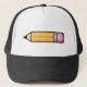 Denna mössa har en söt illustration av en gul serieteckningspenna med ett rosa suddgummi ovanpå.