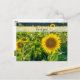 Tack vykort med en stor solros upplyst bakifrån av det gyllene solljuset i en åker i Willard Missouri, USA under gyllene timmen solnedgång. Om du tittar noga kan du se en humla på blomman.