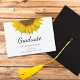 Examen 2023, med en gul solrosdesign på vit bakgrund. Med svart typografi bokstäver kan du lägga till din egen text. Ett bra sätt att fira den speciella examen.