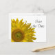 Meddela din kommande söta 15-årsfirande med det vackra personliga gula solros-quinceañera "Save the Date"-inbjudningskortet. Anpassa det med den femtonåriga födelsedagsflickans namn och födelsedagsfestdatum. Dessa söta och eleganta anpassade blom-quinceanera "keep the date"-kort har en gul solrosblomma som pryder hörnet med vit bakgrund.
