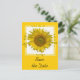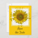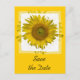 Meddela din sommar- eller höstgårdsbröllop med den vackra Gul solros Bröllop Spara datum-anmälan postkort. Detta eleganta anpassade blommiga bröllop bevara datum-kort har en digitalt förbättrad blomfotografi av en solrosblomma på en gul och vit bakgrund.