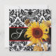 Elegant cool vintage stil blomdesign med vackra solrosor. Färgrik livfull damastmönster, lätt att anpassa med din text och initialer. Du kan anpassa den för vigsel, bröllop, döpta, plats kort, sweet 16, save-the-date, tack-kort, baby shower, bridal shower, quinceanera födelsedagsfirande, Bat Mitzvah, romantiska förlovningsfirande, jul, högtid, kontor, familjeåterföreningar, nyårsfirande, årsdagar, sammankomster, skolavslutningar, konsert, recital eller nästan vilken tillställning du önskar!