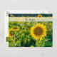 Tack-kort med en stor solros som är bakgrundsbelyst av det gyllene solljuset i ett fält i Willard Missouri, USA under gyllene timmen vid solnedgång. Om du tittar noga kan du se en humla på blomman.