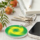 Denna produkt visar ett ljust gultspiralmönster mot en medelgrön bakgrund. Designen presenterar ett virvla runtmönster av en gult- och gröntlutning som blandar försiktigt en färg in i another.
