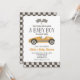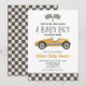 Gul tävlingbil baby shower Inbjudan med gul retro tävlingbil.