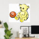 En söt gul teddybjörn som sitter med en boll. Denna design ser riktigt effektiv ut på dessa affischer