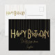 Gul upphängd bokstavsutsmyckning på svart födelsed vykort