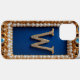 En invecklad guldbokstav W prydd med juveler och pärlor sitter inom en dekorativ vintageinspirerad ram mot en djupblå bakgrund, som betonar lyx, elegans och sofistikering i konstnärlig design.