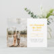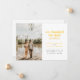Om ni ändrade er bröllopsdag, men bestämde er för att ni inte kunde vänta med att gifta er och rymde istället, dela er stora nyhet med era nära och kära med detta bröllopskort. Det har guldfärgad och mörkgrå text med plats för ett foto samt detaljer om ert bröllop. Baksidan av kortet har plats för ett personligt meddelande.