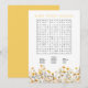 Förhöj din baby shower-firande med vårt Yellow Wildflower Boho Baby Shower Ordsökningsspelkort. Detta engagerande kort har en vacker kant av ömtåliga gula och vita vilda blommor som kompletterar ditt bohemiska temaevenemang. Gästerna kan njuta av att söka efter babyrelaterade ord som är gömda i pusslet, vilket lägger till en lekfull och interaktiv del i din firande. Detta ordsökningsspel ger inte bara underhållning, utan matchar också vackert ditt evenemangs dekoration, vilket gör det till en perfekt aktivitet för din speciella dag.