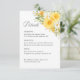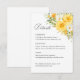 Dela viktig bröllopsinformation på ett elegant och organiserat sätt med detta gula blomsterbröllopets informationskort med mjuka akvarellgula rosor och ömtåliga trädgårdsvildblommor. Denna romantiska botaniska design kompletterar gula blomsterbröllopsinbjudningar samtidigt som den ger gästerna viktig information om ceremonin och mottagningen.