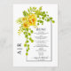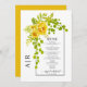 Det här vackra menykortet i bröllop visar på en fantastisk design som innehåller en snygg skiftnyckel i ram, försedd med blommor och löv av lush grönt i levande gult, elegant placerad i det lämnat hörnet. Inkluderandet av ditt monogram ger en personlig beröring till den här fängslande teckningen. Namn presenteras på ett klokt sätt i en utsökt manustypografi, vilket ytterligare förbättrar den övergripande estetiska appellen. Baksidan av menykortet är försedd med en solid gult färg som skapar en harmonisk och visuellt tilltalande sammansättning. Skyddet har varit designat med vissa tillgångar från Freepik.com