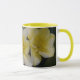 Min originaldigitala grafik med mitt originalfoto av gula blommor, i en trädgård, finns på den söt blommigten mugg kopp. Bilden bearbetades med en vattenfärgsfantasi för ett illustrerat och vismiskt utseende. Insidan av kopp och handtaget är en gult som kompletterar teckningen. Det här är 11 uns mugg, bara den perfekt som är storlek för ditt bryggkaffe eller te - eller till och med hett choklad! Det skulle vara en underbar gåva och man kan lägga in paket med kaffe, tepåsar eller hett choklad. En annan presentidé är att lägga en liten växt i den för att göra extra speciellt för din älskade. Det skulle också vara en trevlig gåva från Mors dag.