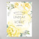Välkomstskylt för gult blommigt bröllop