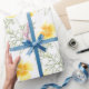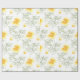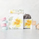 Modern och söt gula blommor med grönt-grått löv över vit bakgrund