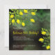 En vacker födelsedagsinbjudan med gula citroner och citrongrenar. Färska frukter på ett citrus träd, fruktigt och ljust mönster. Perfekt för en sensommar födelsedagsfest.