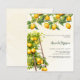 En orange vattenfärgad bakgrund. Dekorerad med vattenfärgade citroner och en stege. Anpassa och lägg till ett namn och festdetaljer.