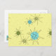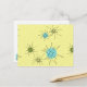Det här mönstret på vykort med gula ikoniska atomstjärnburstar har ikoniska atomstjärnburstar. Det stämmer! Den gammaldags gula bakgrunden med gyllene fläckar är den perfekta bakgrunden för de livfulla turkos-, lugnande selleri- och kitschy päron-gröna cirklarna. Färgfläckarna är placerade på måfå i olika storlekar med överlappande svarta V-formade linjer för att bilda de moderna sputnik-stjärnburstarna. Inspirerad av ett 1950-tals servis-mönster, har denna retro-inspirerade design allt du behöver för att vara verkligt mid-century modern.