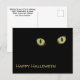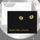 Mystiska fotografiska gula kattögon på ett svart vykort för att önska en Glad Halloween. Den välbekanta citatet av en okänd författare "När svarta katter smyger och pumpor lyser, Må lycka vara med dig på Halloween" är texten på baksidan.. All text är anpassningsbar. Denna bild är originalfotografi av JLW_PHOTOGRAPHY.