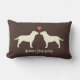 Denna gulliga dekorativa dekorativ kudde för Labrador Retrievers gör en rolig gåva för bröllop eller årsdagar. Silhouettes av två förälskade gula labb. Texten "lyckligt någonsin, efter" har kunnat ändras och personligen med namnen av bruden och brudgummen. En värmegåva för roligt hus för Labrador älskare, nygift person, möhippor och milstolpeårsdagar.