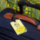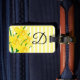 Denna gula färg bagageetikett gör att du kan hitta ditt bagage snabbt. Trycket har en gul och vit rand med en överlagring av grafiskt utformade narcisser. Lägg till din initialer på framsidan med namn och kontaktinformation på baksidan. Köp för dig själv eller ge en uppsättning resetaggar som en present.