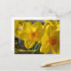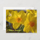 Vykort med ett foto av gula narcisser. Texten ¡Felices Pascuas! i gula bokstäver. Kan anpassas.