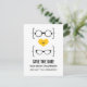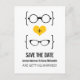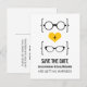 Sällsynt och chic Snygga Glasögon Save the Date-Brevkort med ett gult hjärta flankerad av två par nördig glasögon, ett manligt par och ett flickaktigt par som representerar brudgummen och bruden. Detta avvikande men sofistikerade "save the date"-brevkort är perfekt för att meddela din nördiga bröllop! Lätt att anpassa, lägg bara till detaljerna om ditt bröllop i de tomma fälten. Klicka på "Anpassa"-knappen för att hitta fler anpassningsalternativ.