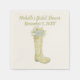 Skapa en speciell personlig touch för bröllopsfester med dessa söta personliga pappersfestservetter. Dessa servetter har en gul blomsterformad regnstövel fylld med en bukett vårblommor och ljusgrön text mot en krämfärgad eller elfenbensvit bakgrund. Använd fyll-i-de-tomma-fälten-mallen för att enkelt anpassa dessa festtillbehör med dina festdetaljer. Hitta kompletterande produkter och festtillbehör i Spring Rain Boot Shower-kollektionen från Asterisk Designs.