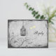 Detta gula och gråa fågelbur och sparvuggla svarskort matchar bröllopsinbjudan som visas nedan. Texten och papperet är allt anpassningsbart. Om du behöver några andra matchande föremål, vänligen e-posta din förfrågan till niteowlstudio@gmail.com.