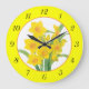 Gula påskliljar på den gula blom- väggen tar tid stor klocka